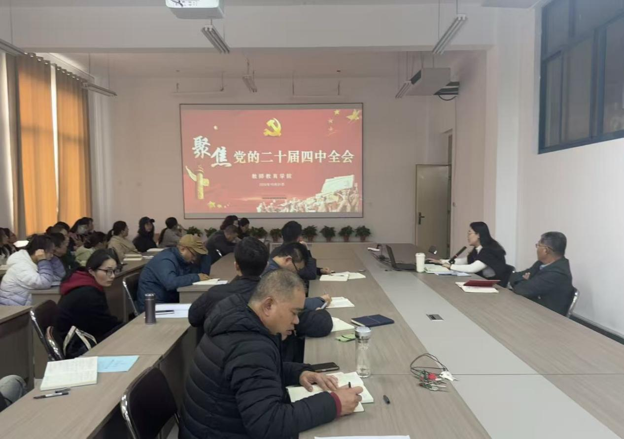 中国共产党第二十届中央委员会第四次全体会议,于2025年10月20日至23日在北京举行。10月31日,我们召开全体教师会议,传达学习党的二十届四中全会精神。学院党委书记郭宁主持。