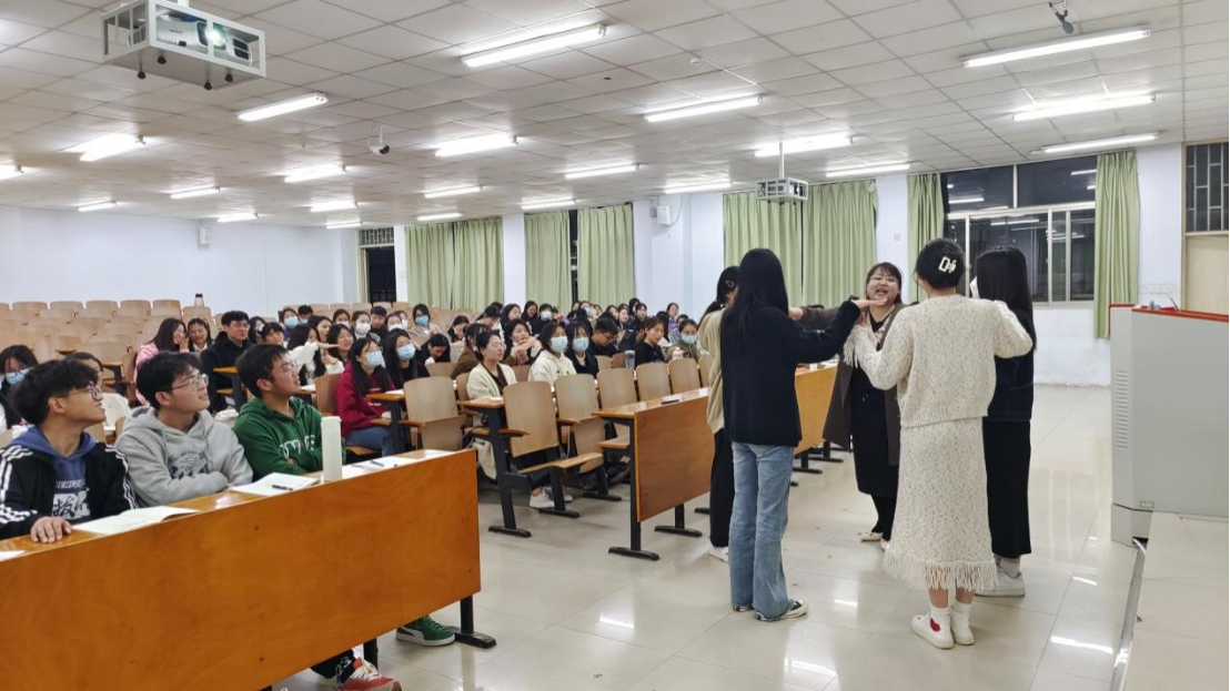 讲座伊始,姜琳老师以问题“你为什么选择这个专业?又有什么样的困惑?”引出此次讲座的主题。接着,姜老师结合自身教学经验,从“如何上好课?”“教学过程的环节分配”“课前小妙招”三方面,讲述教师的职业认同感。在讲授过程中,姜琳老师引导同学们到台前积极互动,亲身体验。最后,姜老师将自己的座右铭“假如你命该扫街,就扫得有模有样,如米开朗基罗在画画、如莎士比亚在写诗、如贝多芬在作曲”送给大家。