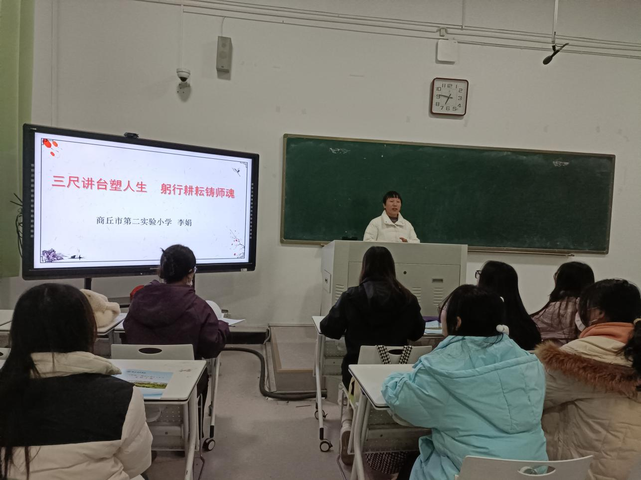为落实学校“‘互联网+’师范生成长工作坊”培训工作,深入贯彻党的二十大报告中师德师风建设的精神,进一步提升师范生的师德素养,11月23日晚,bv伟德源自英国始于1946在行方楼210教室成功举办小学教育专业师范生成长工作坊⟪三尺讲台塑人生 躬行耕耘铸师魂 ⟫师德专题讲座。商丘市第二实验小学教师李娟主讲,小学教育专业21级全体同学参加。