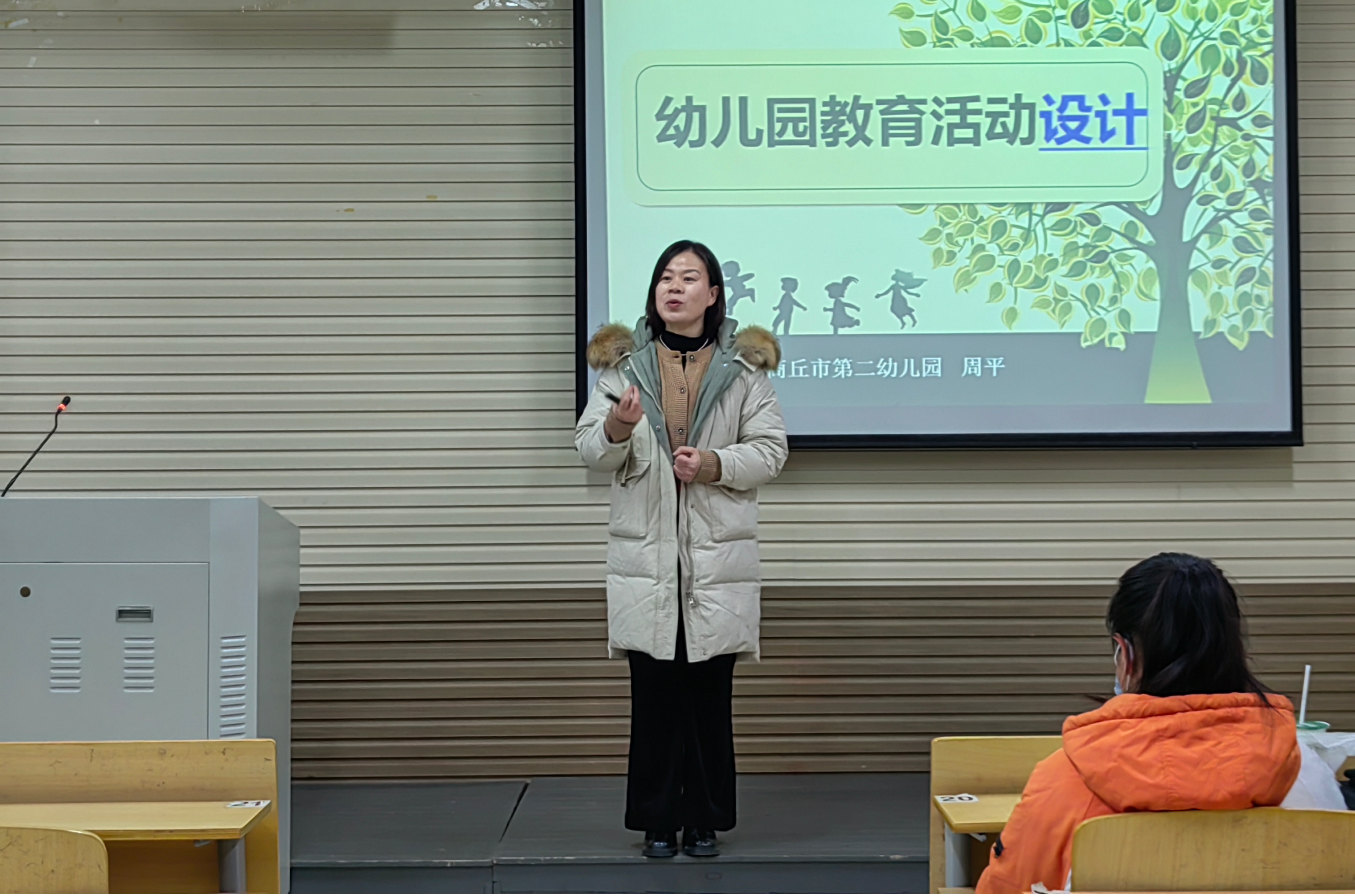 周平园长强调,幼儿园教育活动设计应当是“有目的,有计划的”。她进一步与同学们交流,询问大家对教学活动设计中最困难的地方,并以一个集体教学活动视频为例,引导同学们记录教育活动的内容。