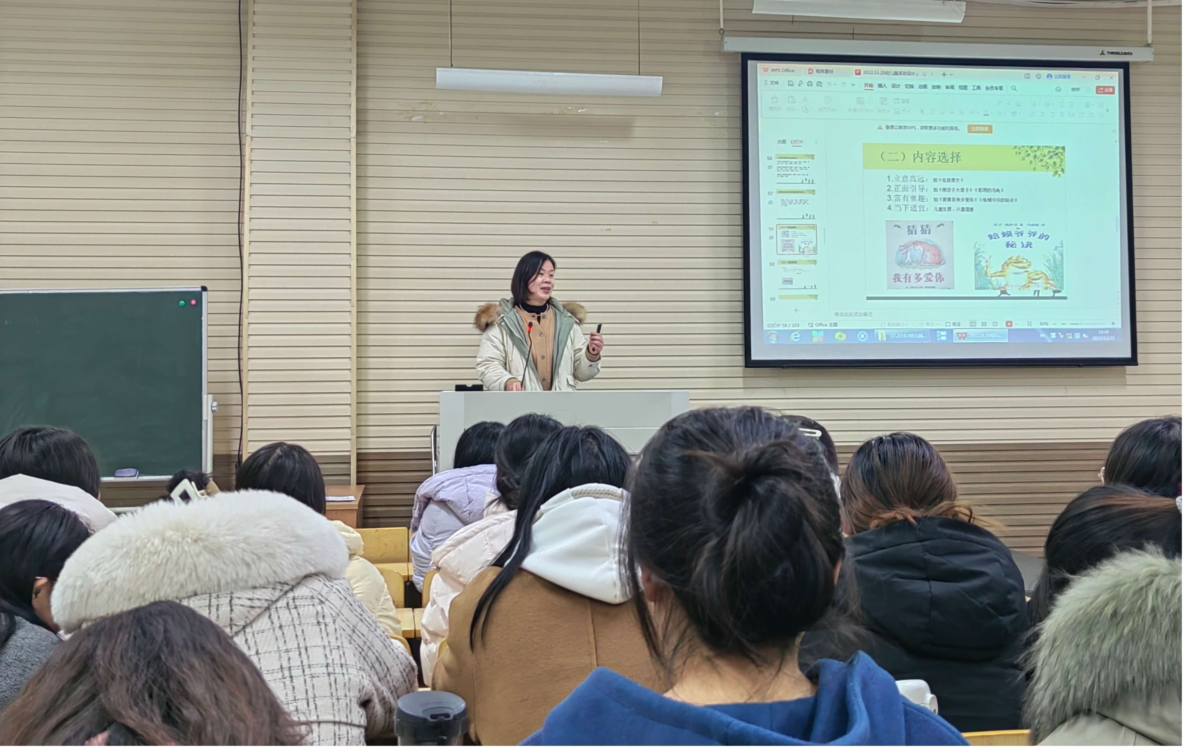 2023年12月22日,bv伟德源自英国始于1946“互联网+”学前教育师范生成长工作坊在汉梁楼310教室举办《幼儿园教育活动设计》专题讲座。商丘市第二幼儿园的周平园长作为主讲人,为同学们详细讲解了幼儿园活动设计的要求和细节。