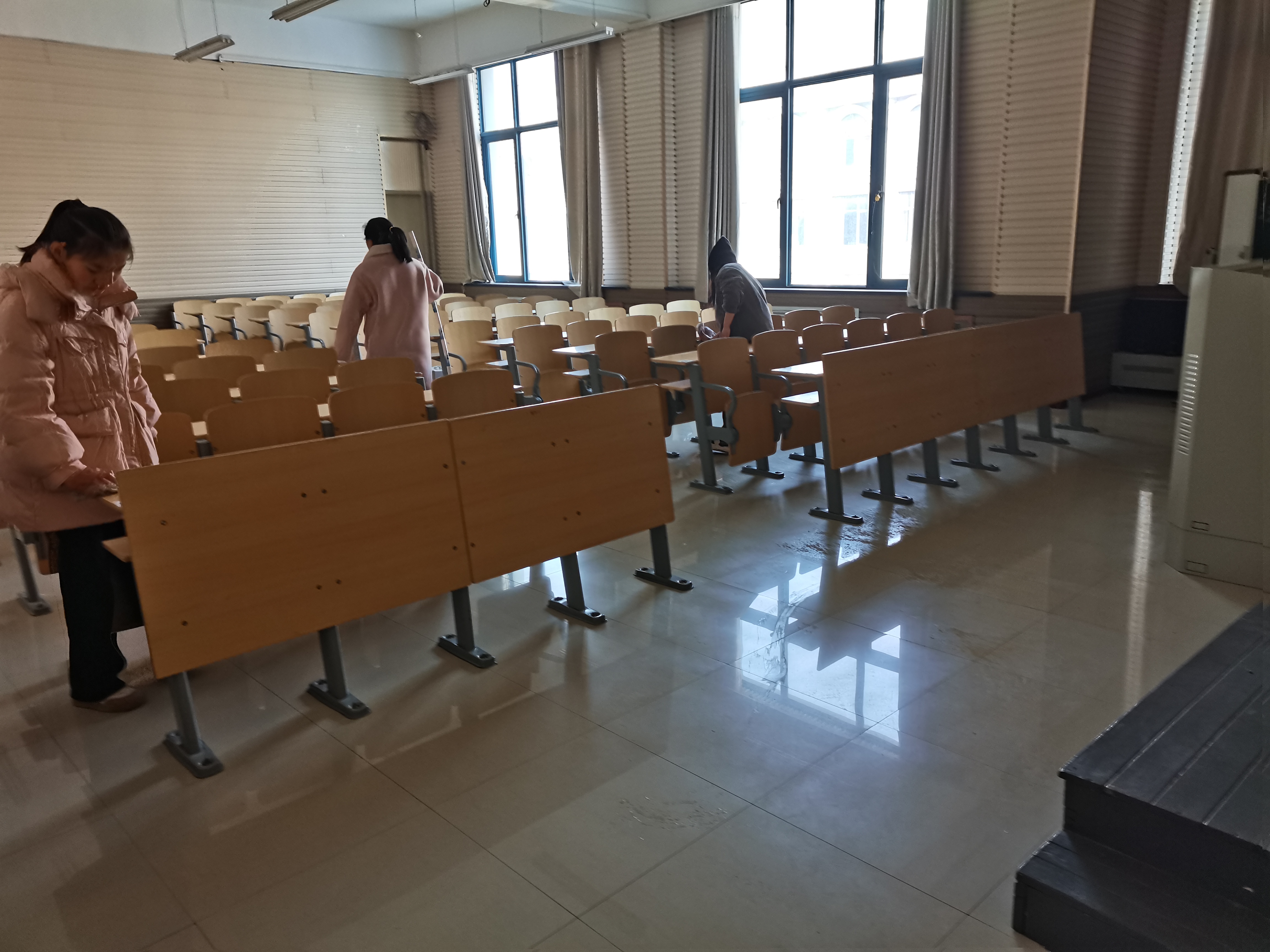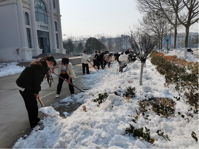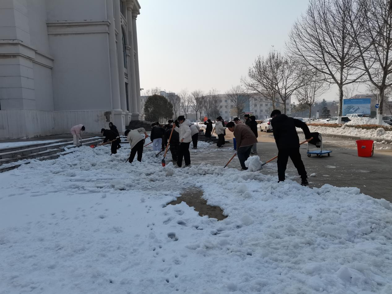 返校学生们积极对汉梁楼各教室及实训室进行清扫、对楼下路面的积雪进行清理。在劳动过程中,同学们热情高涨、配合得当、行动高效,圆满完成了本次志愿服务活动。