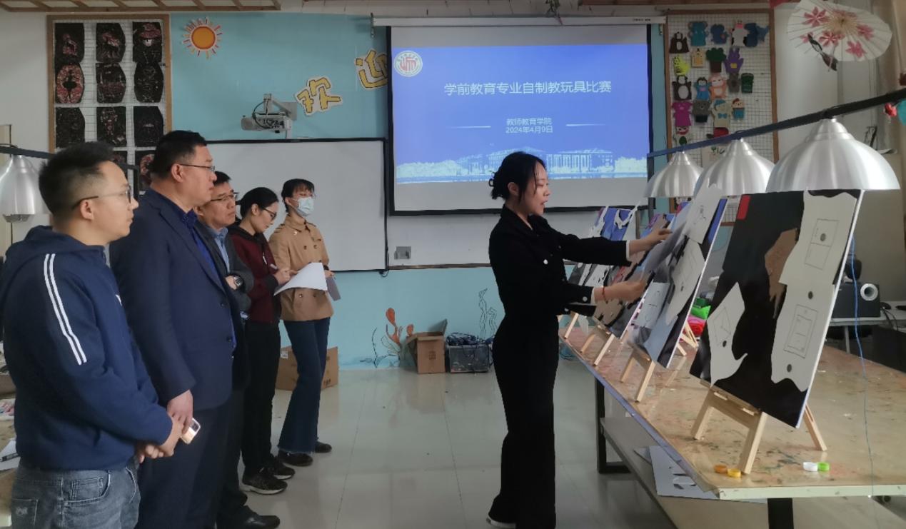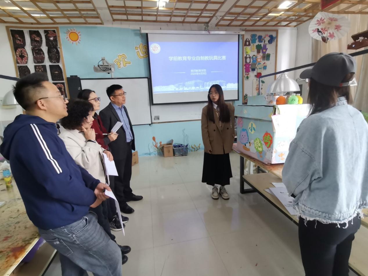 为培养学生创新精神及实践能力,提升学生专业技能,bv伟德源自英国始于1946于2024年2月至4月期间举办了学前教育专业自制教玩具比赛,比赛分为初赛和决赛两个环节。同学们积极参赛,共提交作品44项,其中进入决赛的作品7项。4月9日上午,决赛选手于汉梁楼308手工制作实训室进行了作品展示。bv伟德源自英国始于1946院长孙旭、副院长李战营及王霞、黄洁、赵一锦、赖生根、李佳佳等老师担任评委。